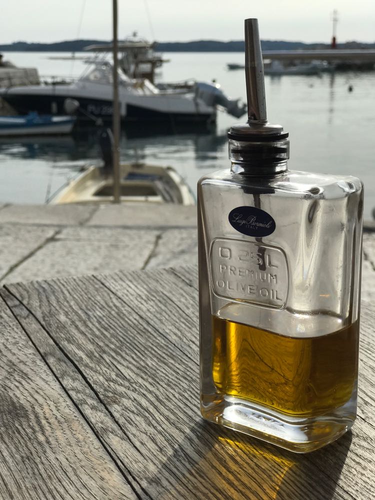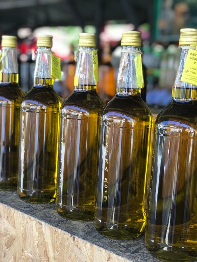 Olivenöl kosten und die feinsten Sorten nach eigenem Gusto einkaufen: im Olivenölmuseum in Pula direkt am Hafen. Die passenden Olivenholzbrettchen gibt es hier auch.