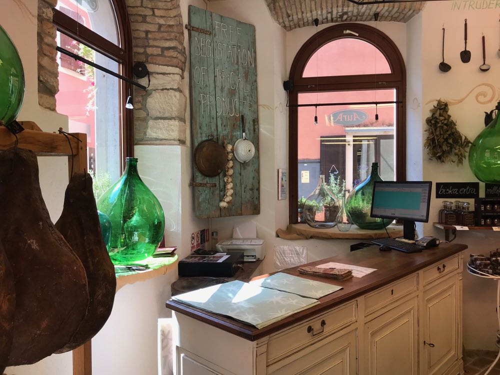 Den besten Gin, viele ausgezeichnete Whisky-und Likörsorten und natürlich Olivenöl und Honig: Für istrische Mitbringsel sollte man unbedingt bei AURA in Bizet oder Hum vorbei schauen.