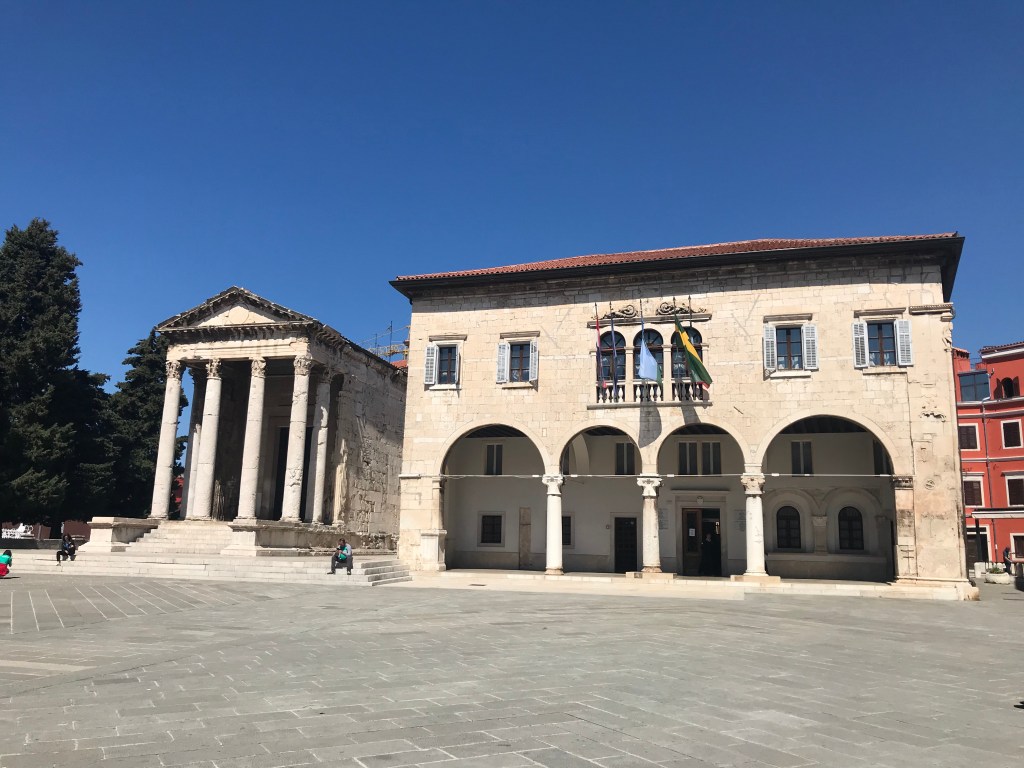 Der Hauptplatz oder auch Forum genannt war zur antiken und mittelalterlichen Zeit Pulas der Dreh- und Angelpunkt. Rund um das Forum waren die Sitze der Religions-, Verwaltungs-, Gerichts- und Wirtschaftsorgane. Der Tempel und die verschiedenen antiken Häusern um den Platz versprühen ein einmaliges Flair und man fühlt sich in die Römerzeit zurückversetzt.